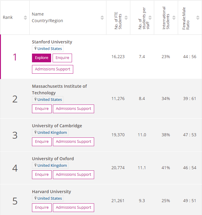 살펴보자. 우선 1위는 스탠포드가 차지하였다.