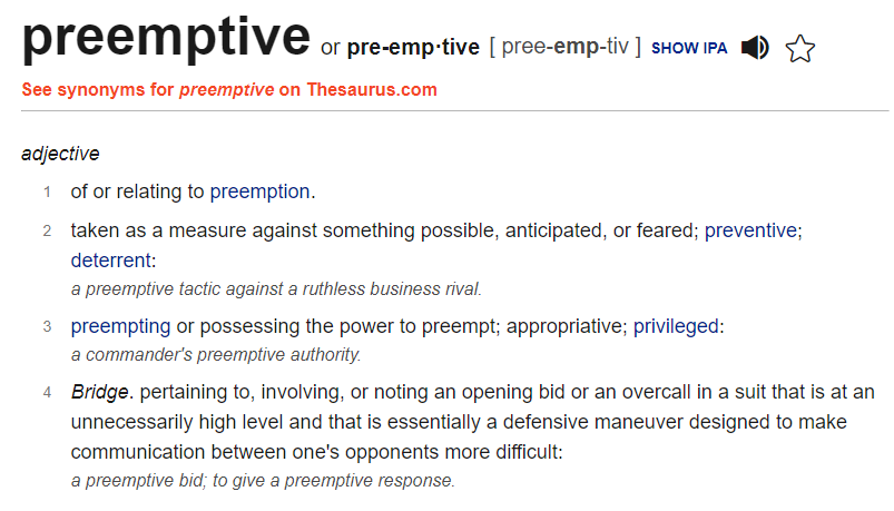 그런데 재미난 단어는 preemptive 이다. 네이버 사전을 먼저 보자.