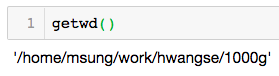자, 위의 형태는 Jupyter notebook에서 R을 실행한 것이다. 디버깅이 손쉽다는 점과 이렇게 결과를 라인 단위로 확인할 수 있는 장점이 있어서 이러한 플랫폼을 주로 사용하니 참고하자. 위와 같이 내 컴퓨터의 해당 폴더의 경로에 대한 정보가 나타난다.