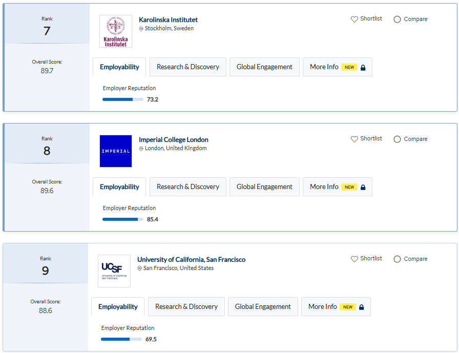 2024년 QS 세계대학순위 :: 의대 순위 탑 10